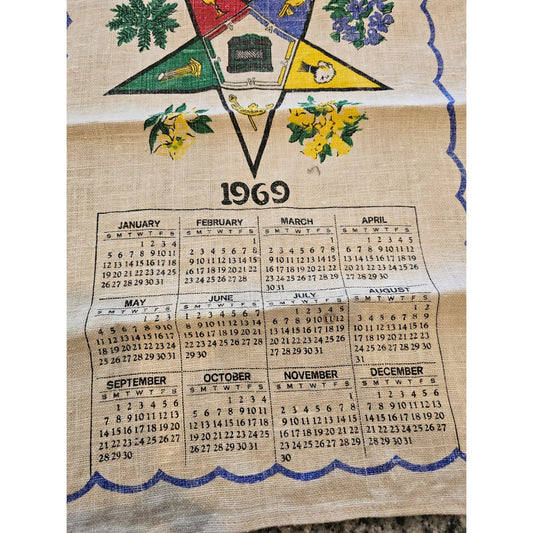 1969 Order of the Eastern Star Masonic Fabric Stevens Towel Linen Calendar