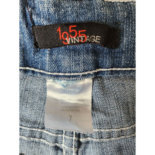 1955 Vintage Juniors Sz 7 Distressed Cut Off Blue Jean Denim Shorts