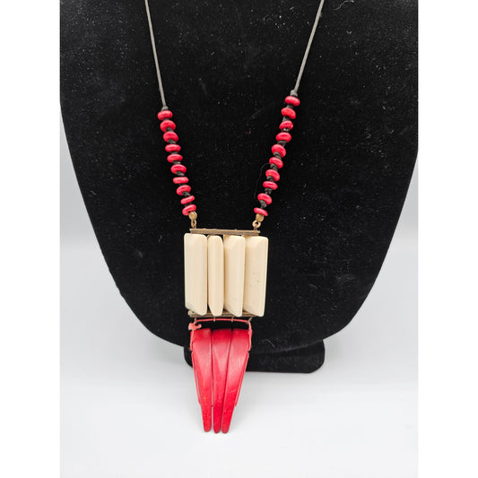 Vintage Angami Style Statement Piece Necklace Red Cream Stones