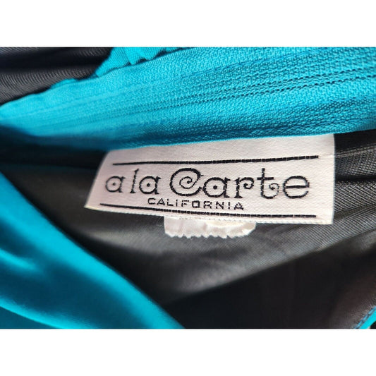 Vintage A La Carte California Womens Sz M Formal Midi Dress Blue Satin Rhineston