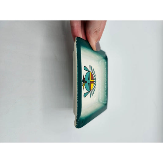 Vintage Mid Century SIMS Native American Trinket Dish Bold Green Colors 4.25"