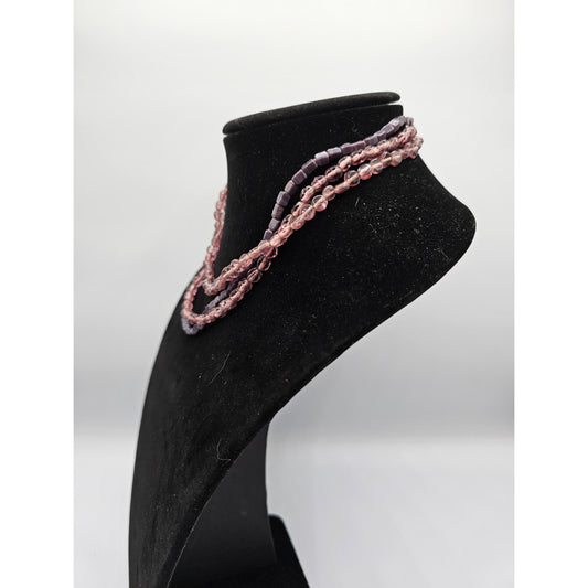 Vintage Multi Strand Glass Beaded Necklace Light Pink Purple 3 Strand