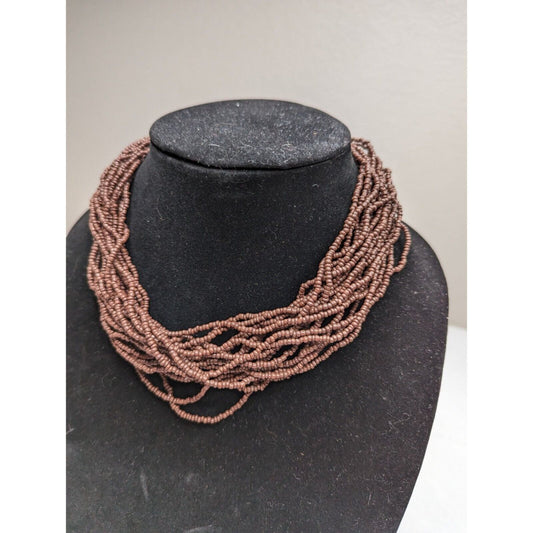 Vintage Multi Strand Seed Bead Necklace Solid Black Artisian