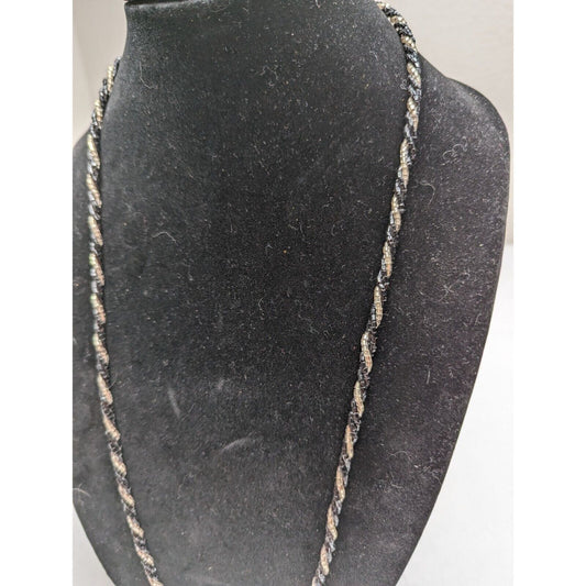 Vintage Womens Braided Beaded Long Necklace Black and Champagne Colored