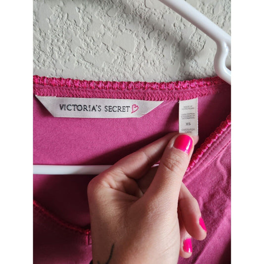 Vintage Victorias Secret Sz XS Sleep Shirt Long Sleeve Pink Embroidered