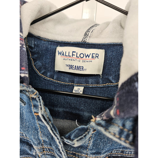 Wallflower Juniors Sz M Cropped Blue Jean Jacket w/ Hood Sweater Sides