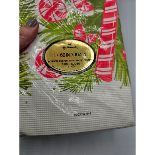 Vtg Hallmark Christmas Tablecloth Paper Table Cover Rectangle 60X102" Candy Cane