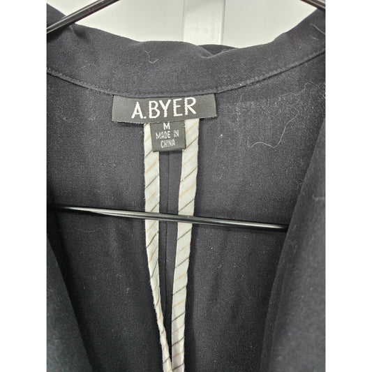 A Byer Womens Sz M Single Button Solid Black Career Blazer