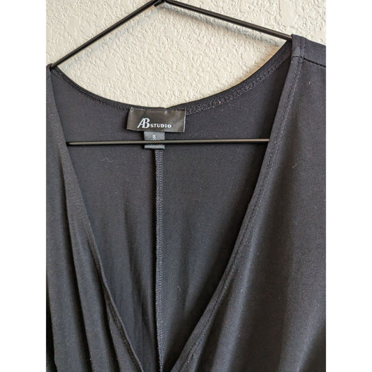 AB Studio Womens Sz S 3/4 Sleeve Wrap Dress Solid Black Knee Length