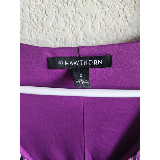 41 Hawthorne Womens Sz M Knee Length Faux Wrap Dress Purple Zipper Side