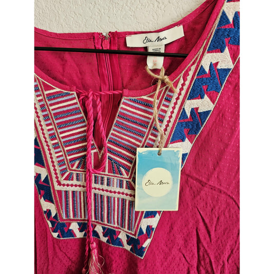 Ella Moon XL Knee Length Short Sleeve Tunic Style Embroidered Dress Dark Pink