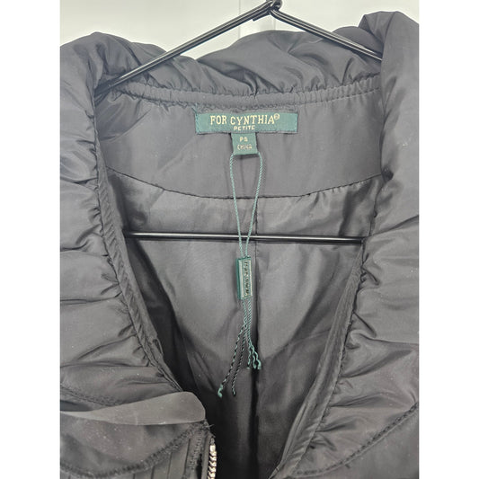 For Cynthia Womens Sz PS Petite Black Zip Up Puffer Vest Pleated
