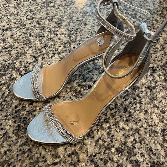 Aldo Womens Sz 9 Silver Stiletto Heels Rhinestones Ankle Strap