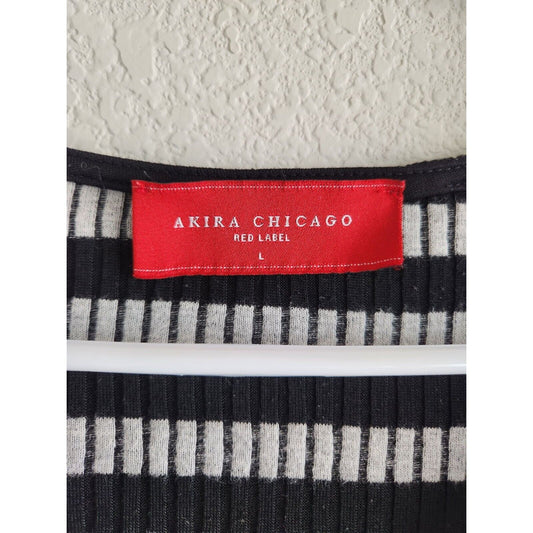 Akira Chicago Womens Sz L Ribbed Bodycon Sweater Dress Black White Striped