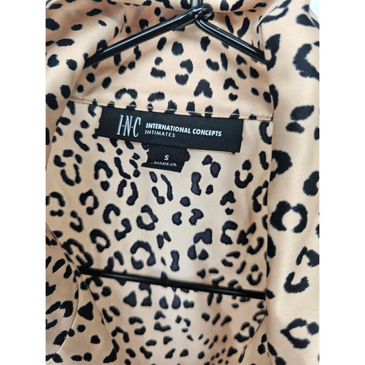 INC International Concepts Womens Sz S Leopard Print Satin Pajama Sleep Shirt