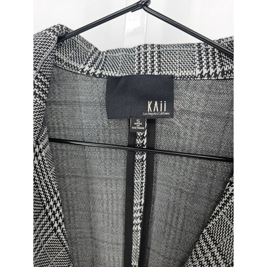 Kaii Womens Sz S Single Button Blazer Jacket Black Gray Houndstooth