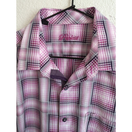 Paoletti Mens Sz L Long Sleeve Button Down Shirt Purple Plaid 100% Cotton