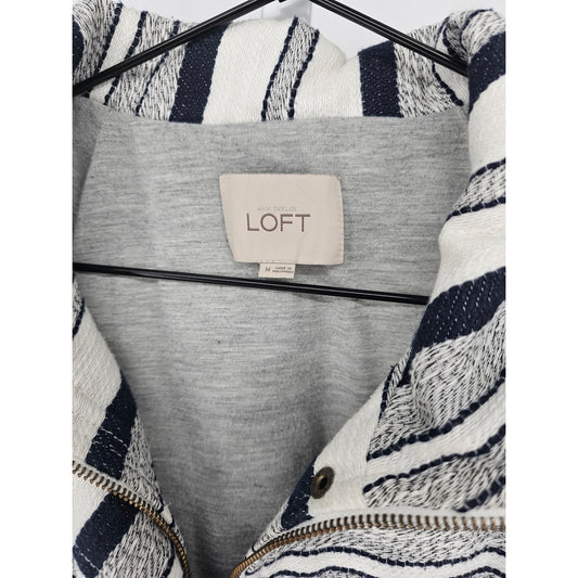 Ann Taylor LOFT Womens Sz M Cotton Navy White Striped Safari Jacket Coat