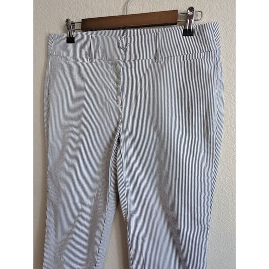 Ann Taylor Womens Sz 6 Cropped Seersucker Pants Slim Leg Blue White