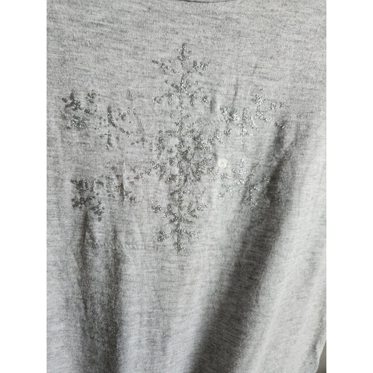 Roz & Ali Womes Sz L Long Sleeve T Shirt Gray Glitter Snowflake Print