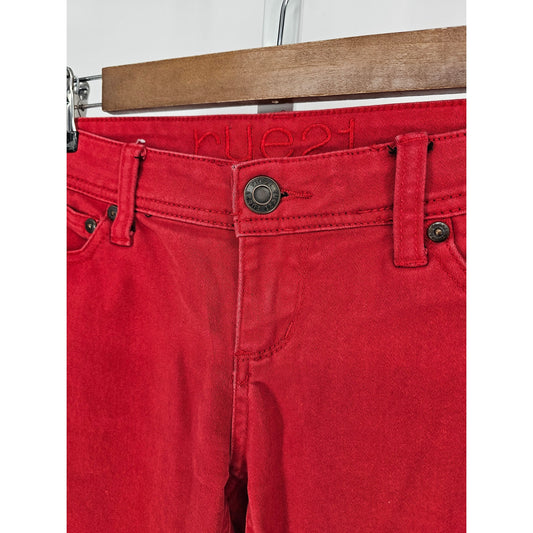 Rue 21 Juniors Sz 3 Low Rise Skinny Jeans Bright Red Y2K