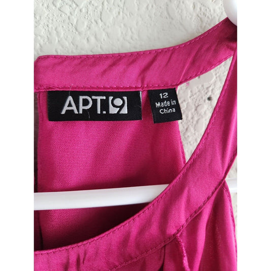 Apt 9 Womens Sz 12 Purple Satin Midi Dress Sleeveless Ruffled Neck
