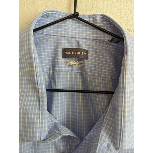 Van Heusen Mens 2XL Long Sleeve Button Down Dress Shirt Light Blue Regular Fit