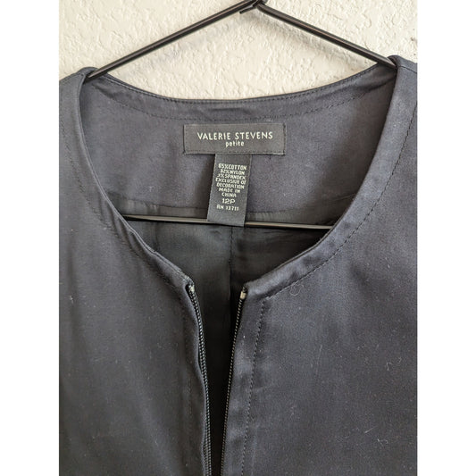 Valerie Stevens Womens Sz 12P Petite Zip Up Jacket Black Career Cotton Blend
