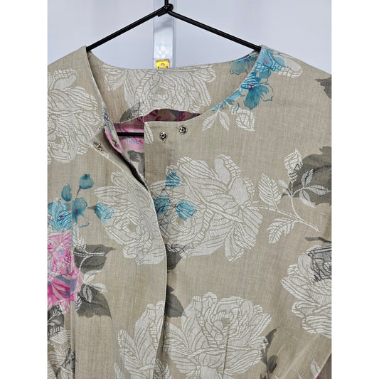 Vintage 1960s Womens Sz L Buton Blazer Kacet Beige Floral High Neckline