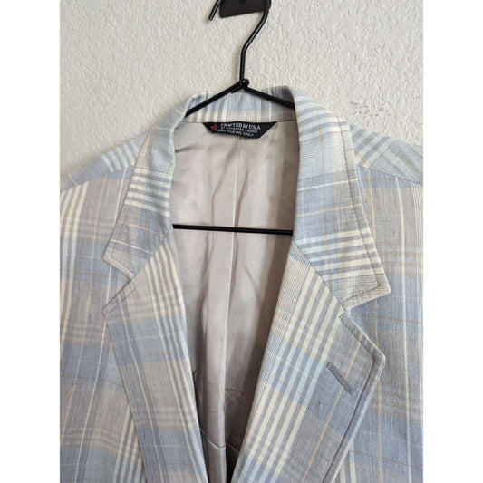 Vintage 1970s Andover Reed Mens 2 Button Suit Coat Light Blue Plaid Sz 42R