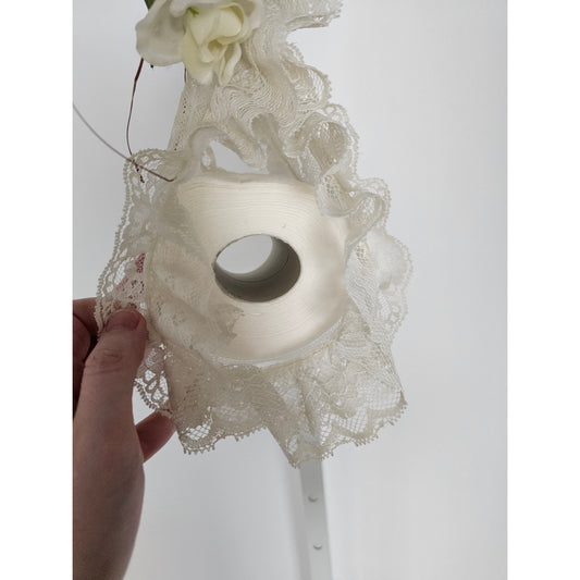 Vintage 1970s Hanging Toilet Paper Roll Holder White Frilly Lace