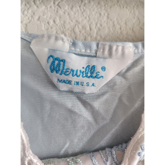 Vintage 1970s Merville Womens Sz L Light Blue Nylon Nightgown