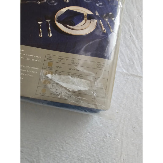 Vintage 1970s Courtenay Tablecloth Linen Light Blue Tableaux