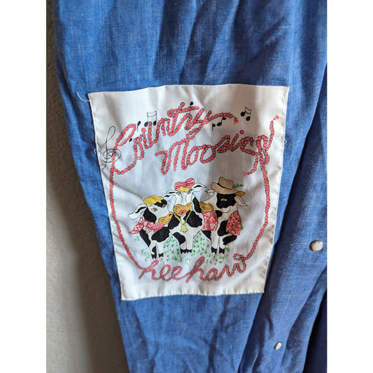 Vintage 1970s Womens Sz S Chambray Pearl Snap Nightgown Cow Pockets Country