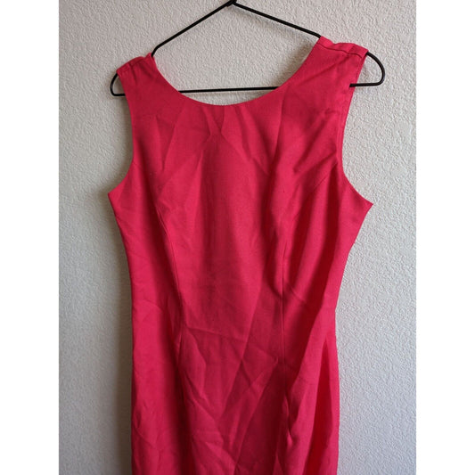 Vintage 1980s Womens Sz 6 Knee Length Dress Sleeveless Hot Pink Lace Detail