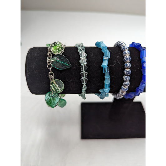 Set of 10 Vintage 1990s Y2K Single Strand Beaded Bracelets Colorful