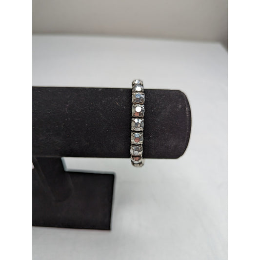 Vintage 1990s Silver Rhinestone Stretch Bracelet Diamond Shapes
