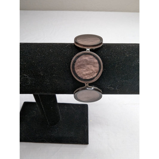 Vintage 1990s Single Strand Beaded Bracelet Silver Metal and Brown Wood Beads
