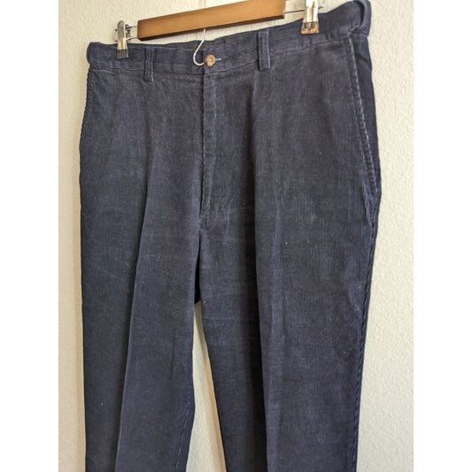 Vintage 1990s Haggar Mens Sz 34x34 Corduroy Dress Pants Navy Blue Loose Fit