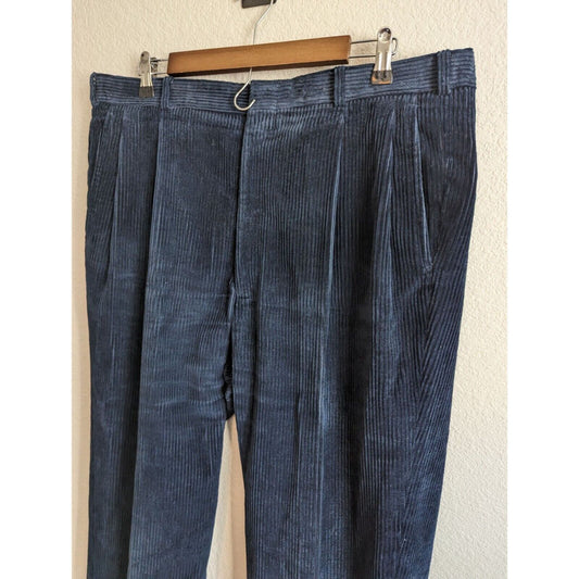Vintage Baggy fit Lands End Corduroy Pleated Pants Blue Mens Sz 36L Long
