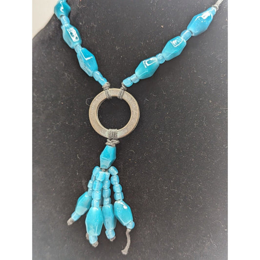 Vintage Turquoise Glass Beaded Southwestern Necklace Silver Tone