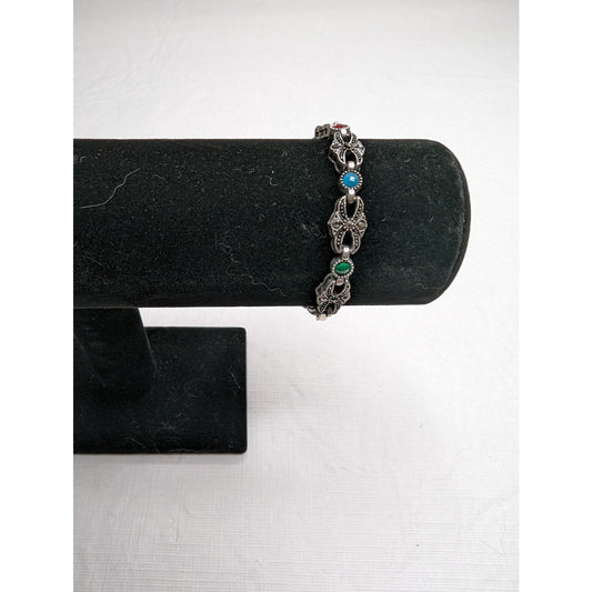 Vintage 1990s Y2K Silver Tone Clasp Necklace w/ Bead Inlay