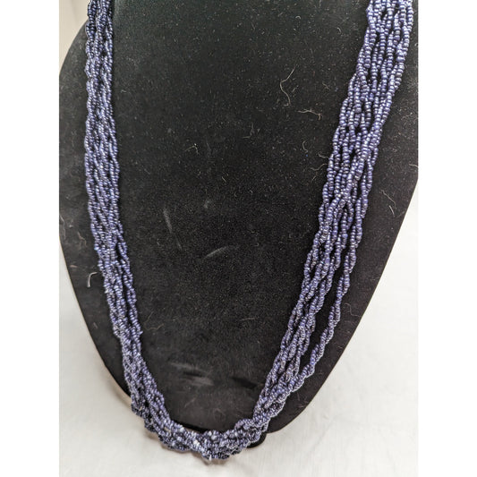 Vintage Mid Century Multi Strand Seed Bead Rope Style Necklace Dark Blue