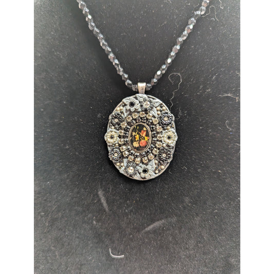 Vintage 1990s Cameo Pendant Style Necklace Multi Media Floral