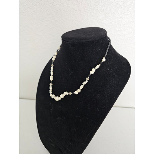 Vintage 1990s Single Strand Cream Colored Beaded Necklace Mixed Media