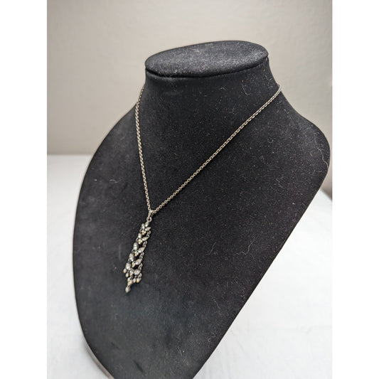 Vintage Y2K Silvertone and Rhinestone Pendant Necklace