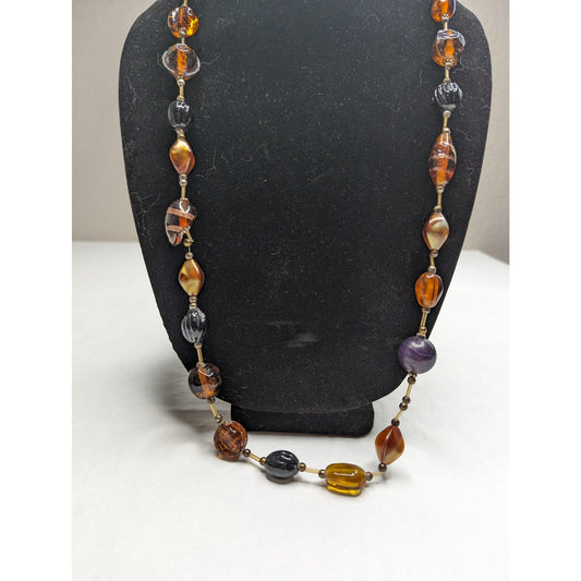 Vintage Mid Century Single Strand Glass Beaded Necklace Amber color