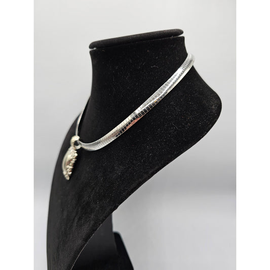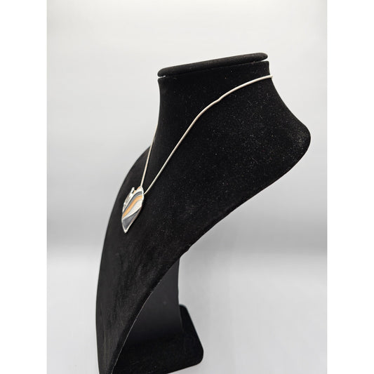 Vintage 1990s Dainty Rolled Rope Style Pendant Necklace Silver Black