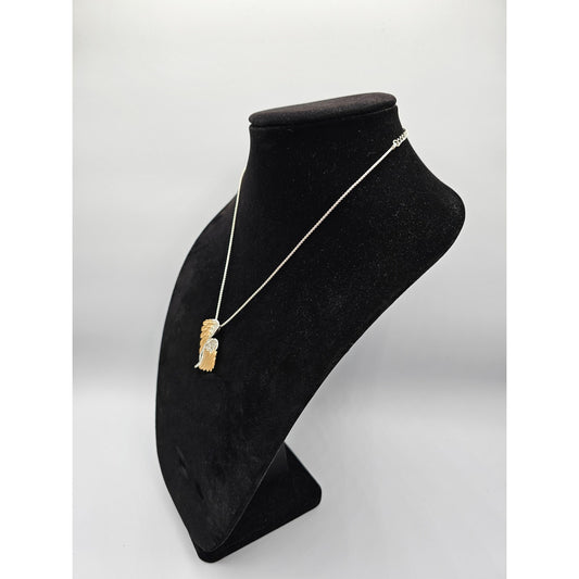 Vintage Y2K Pendant Necklace Silver Tone Gold Bird Wings Rhinestone Detail