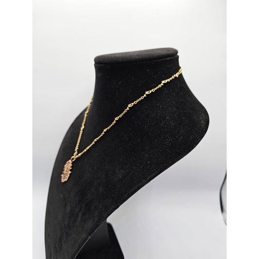 Vintage Y2K Pendant Necklace Gold Tone Pink Rhinestone Enamel Pendant